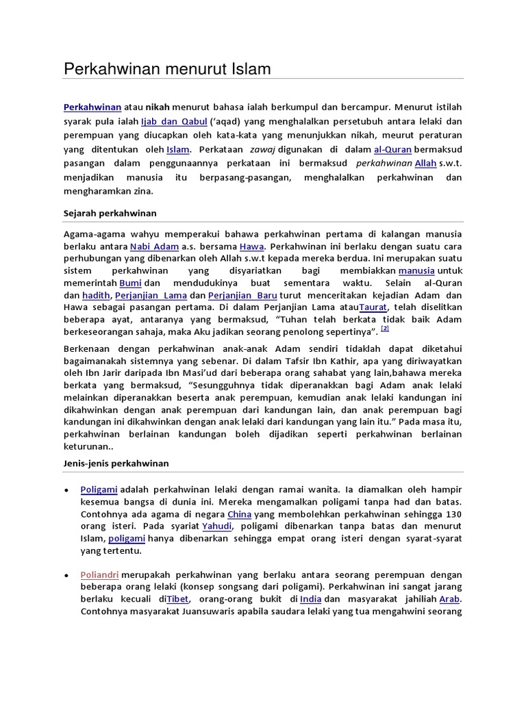 Perkahwinan atau nikah menurut bahasa ialah berkumpul dan bercampur. Kalau tidak, anda akan terlepas untuk menjadi seorang muslim yang terbaik! Menerangkan galakan berkahwin berdasarkan sunnah. Manusia akan menghadapi berbagai kepincangan sekiranya pergaulan lelaki dan wanita tidak diatur dan disusun mengikut peraturan tertentu. Konsep perkahwinan dalam islam dan adat perkahwinan masyarakat malaysia.