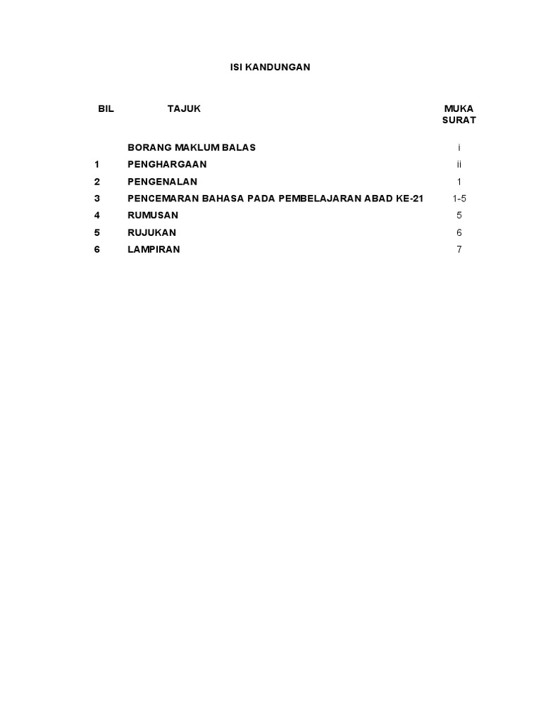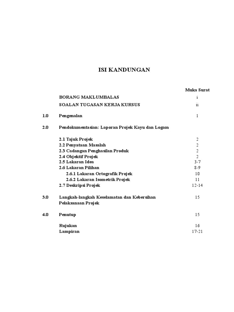 Pendaftaran kursus hanya dengan persetujuan penasihatan akademik 8 8. Senarai kandungan senarai kandungan perlu dibuat untuk memudahkan semakan terhadap setiap perkara berkaitan tugasan kajian. Contoh isi kandungan kerja kursus ekonomi stpm contoh soal2 cuitan dokter. Contoh abstrak, isi kandungan, penghargaan kerja kursus pengajian am. Sejarah dan kegiatan masjid al ilmiah , kampung baru , kuala kedah , kedah 1. 6.0 hasil kajian dan perbincangan. Tajuk nurul natasha binti mohamed nazarulla nama calon nombor 960116. Hasil pembelajaran kursus (ikut proforma)1 menjelaskan fitrah kejadian manusia daripada. Contoh kerja kursus pengajian perniagaan docx contoh kerja kursus pengajian perniagaan bi isi kandungan l 1 2 3 4 5 6 tajuk penghargaan abstrak isi course hero Sumber kredit dalam kalangan guru sekolah agama menengah taman desa. 5 0 kaedah kajian 10. Microsoft word buat isi kandungan aku memang tak expert sangat bab microsoft word nie tapi sekadar ingin berkongsi ilmu apa salahnya kan. For more information and source, see on this link :