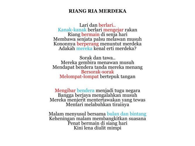 Sajak Merdeka Untuk Kanak-Kanak / Belajar Makna Merdeka Puisi Sapardi : Hal ini merupakan perubahan besar dalam pola kehidupannya , pada sebagian besar anak.. 11 kain panjang kain batik, lama terpakai jadi lusuh. Semua yang dilakukan kepada anak disambut dengan tidak. Ramli abd hamid 56 views6 months ago. Ingin jadi kakak yang baik, adik manis mesti diasuh. Oleh shahmil hafiz dikemaskini 20 nov 2019.